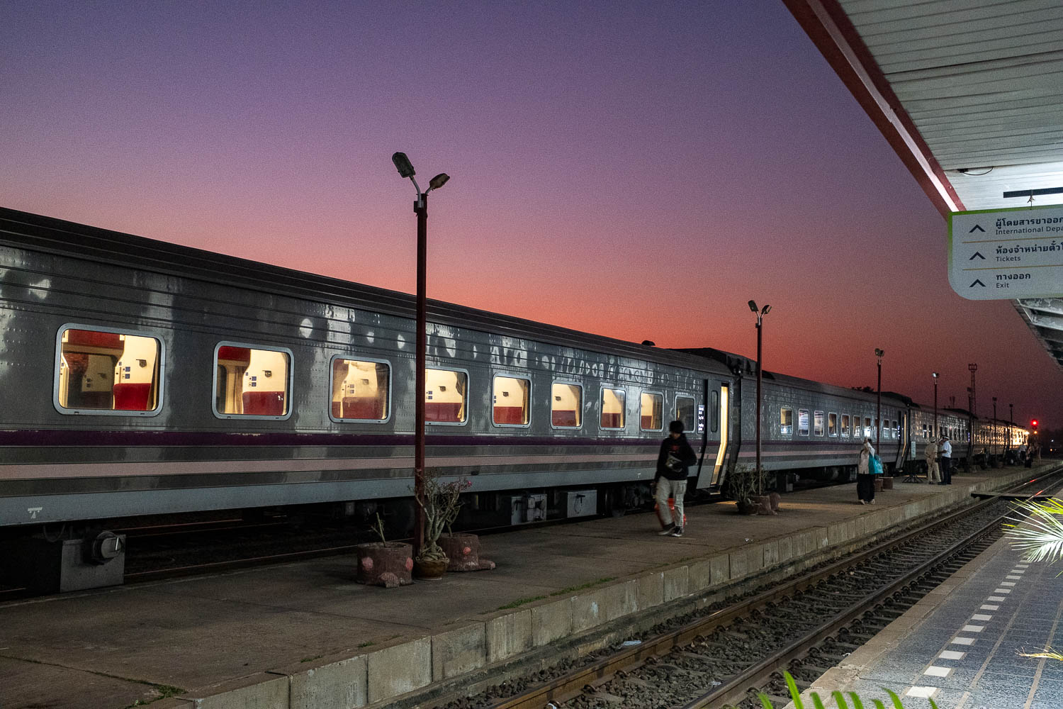 Nette Stadt, nach Essen laufen wir zurück zum Bahnhof. Um 19:40 soll unser Zug nach Bangkok pünktlich abfahren. Er steht schon da, wir können einsteigen.
